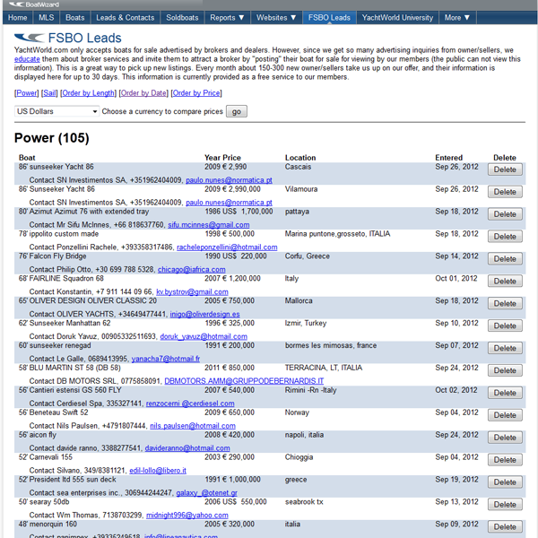 Ogni giorno ci arrivano richieste dai proprietari di imbarcazioni che desiderano vendere la propria barca avvalendosi dei servizi di broker professionisti. Grazie al vostro account di YachtWorld potete accedere ai dati di questi proprietari e delle loro imbarcazioni. E’ un servizio gratuito che YachtWorld mette a disposizione dei suoi clienti.